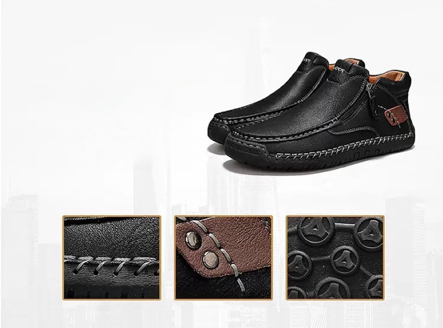 El cuero de alta calidad ofrece resistencia al agua, al viento y a los químicos. Mantiene tus pies secos y cómodos todo el día, bloqueando la lluvia, y es fácil de limpiar con un paño.